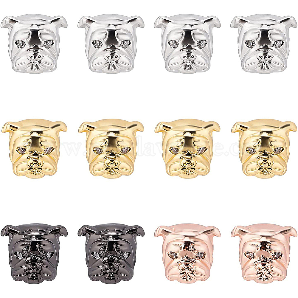 12 шт. 4 цвета латунные микро-паве кубические циркониевые бусины для щенков, голова бульдога