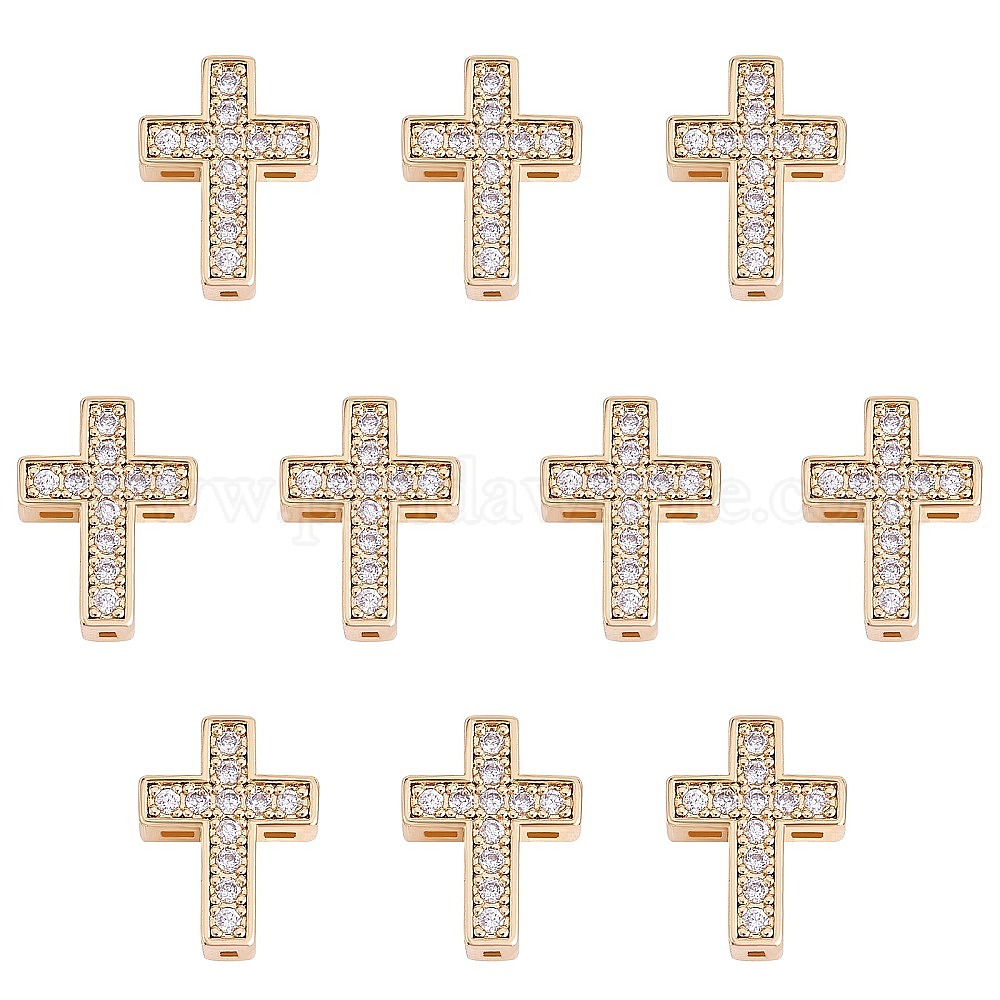 10шт латунь микро паве прозрачные бусины кубического циркония, крестик
