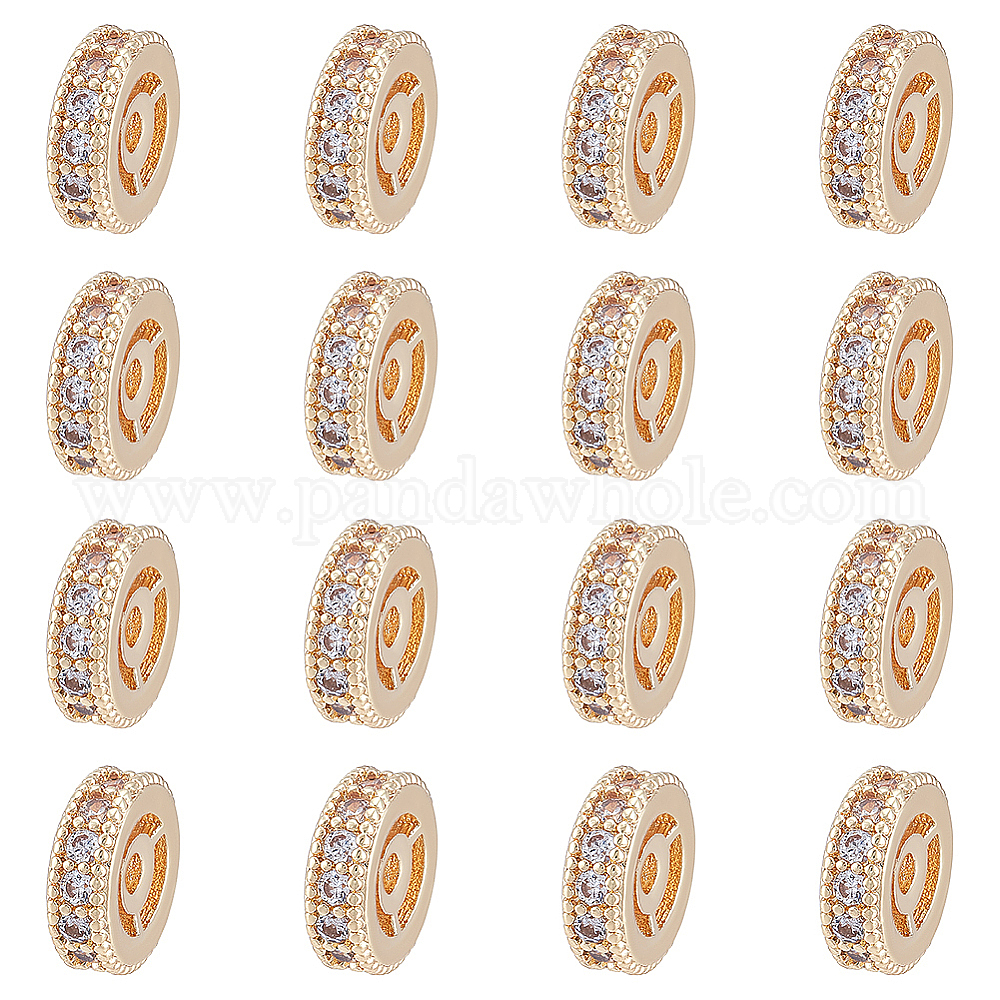 белые латунные бусины из прозрачного кубического циркония: около 8.5 мм в диаметре, толщиной 2.5 мм , отверстие : 1.6 мм, 16 шт;