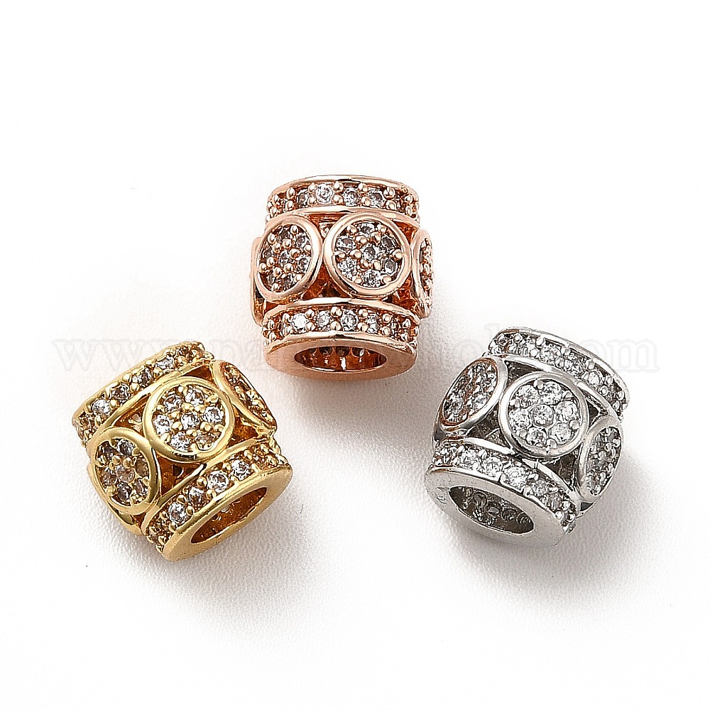 Стойки обшивки латунь микро проложить кубического циркония бусы, долговечный, без кадмия и без свинца, баррель (02GXFA)