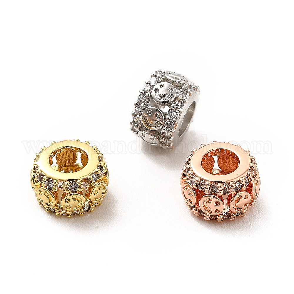 Покрытие стойки латунь микропаве прозрачные кубические циркониевые бусины, долговечный, без кадмия и без свинца, рондель с улыбающимся лицом