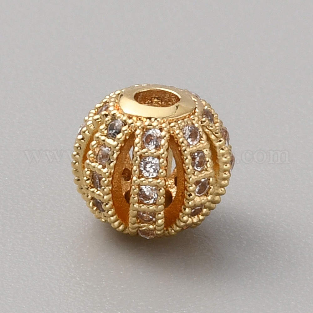 • Настоящее золото 18K Латунные шарики циркония кубической, полый круглый, реальный 18 k позолоченный, 7.5x7 мм, отверстие : 1.8 мм