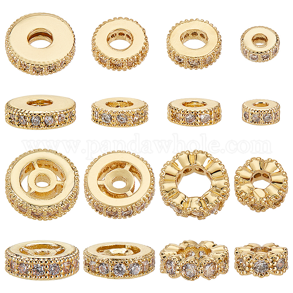 16 шт 8 стили латунные бусины из кубического циркония микропаве, плоско-круглые