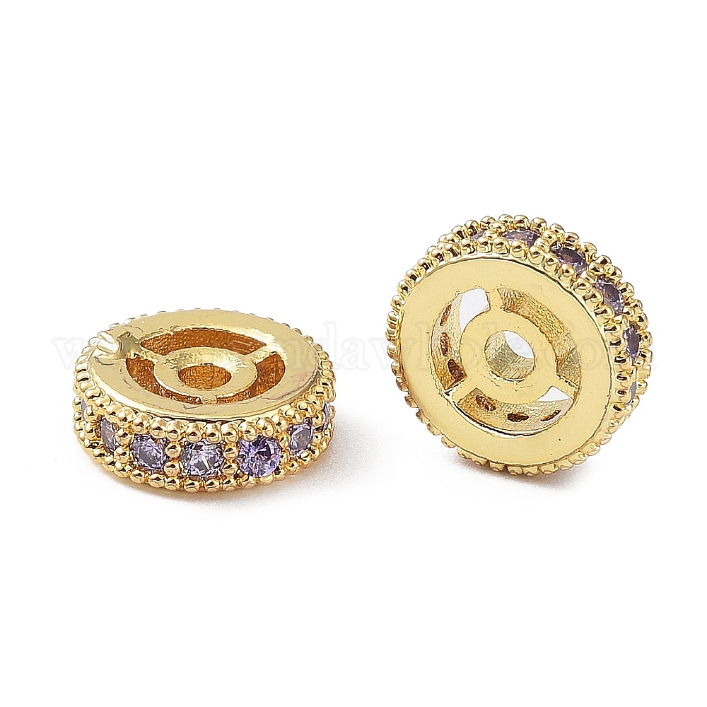 Латунные микро проложить кубического циркония бусы, плоско-круглые