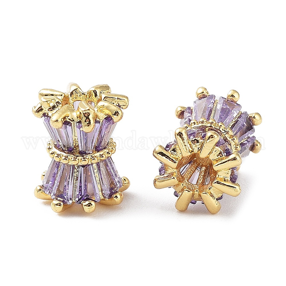 • Настоящее золото 18K Латунные микро проложить кубического циркония бусы, колонка, реальный 18 k позолоченный, 9x8 мм, отверстие : 3 мм