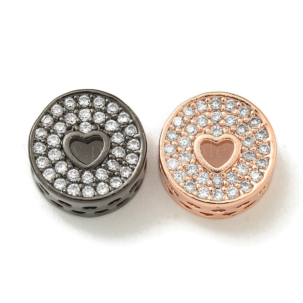 Покрытие стойки латунь микропаве прозрачные кубические циркониевые бусины, долговечный, без свинца и без кадмия, плоско-круглые с сердцем
