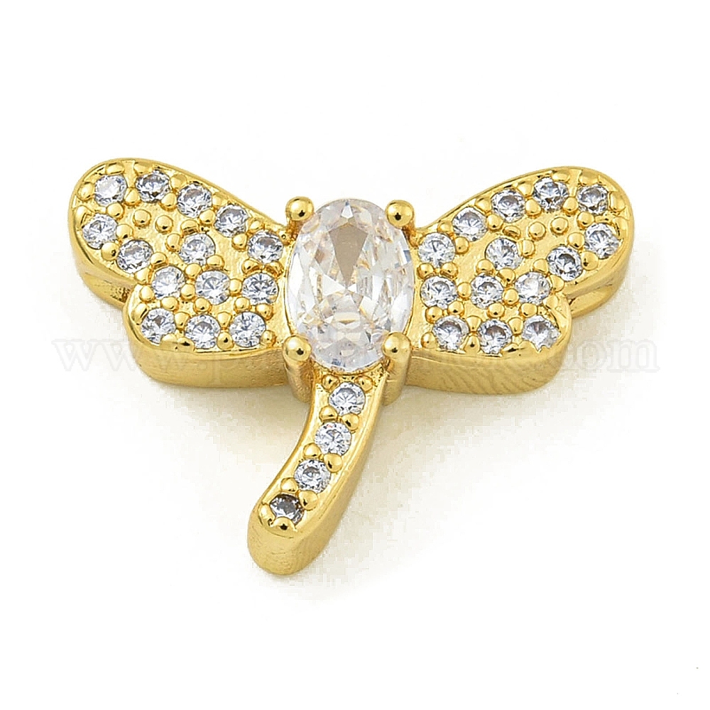• Dragonfly Стойка покрытие латунь паве кубический цирконий эмалированные бусины, без свинца и без кадмия, реальный 18 k позолоченный, стрекоза, стрекоза, 15.5x22.5x6.5 мм, отверстие : 2.5 мм