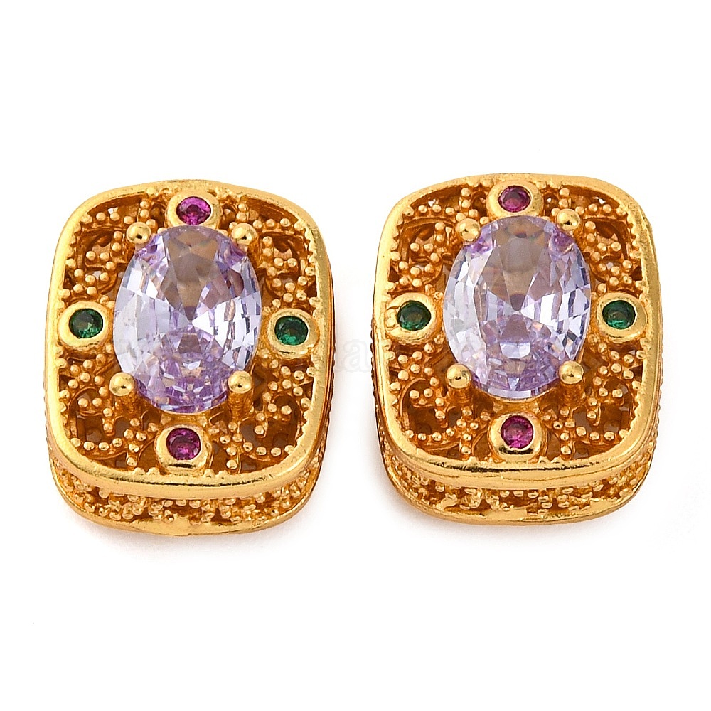 Латунные микро проложить кубического циркония бусы, без кадмия, без никеля и без свинца, прямоугольные