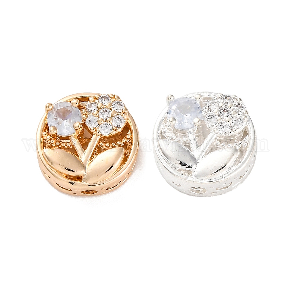 Стойки обшивки латунь микро проложить кубического циркония бусы, со стеклом, долговечный, без свинца и без кадмия, плоские круглые с цветком