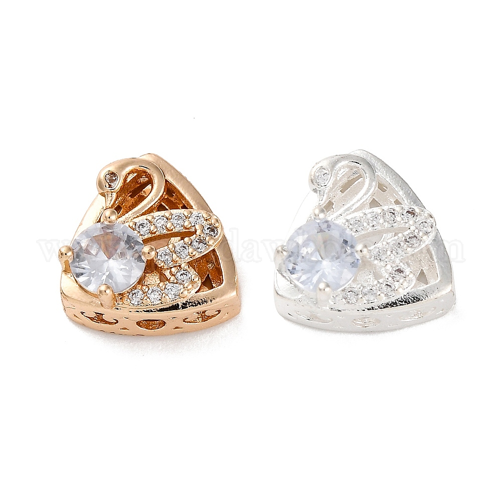 • Серебро Стойки обшивки латунь микро проложить кубического циркония бусы, со стеклом, долговечный, без свинца и без кадмия, треугольные, серебряные, 12x12x7 мм, отверстие : 1.6 мм