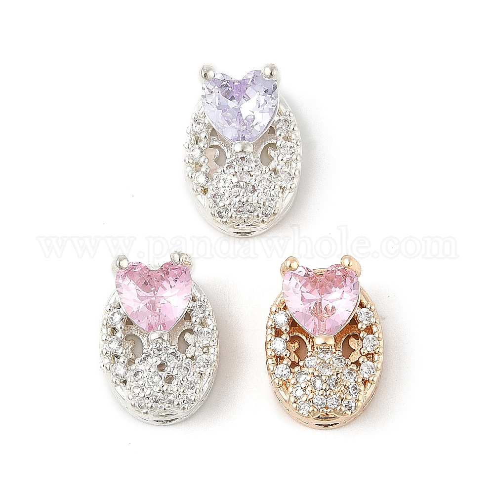 Латунные микро проложить кубического циркония бусы, овальные с сердцем, без свинца и без кадмия, долговечный