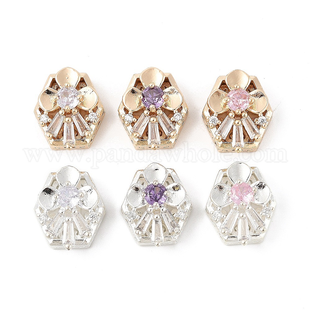 Латунные микро проложить кубического циркония бусы, шестиугольник цветок, без свинца и без кадмия, долговечный