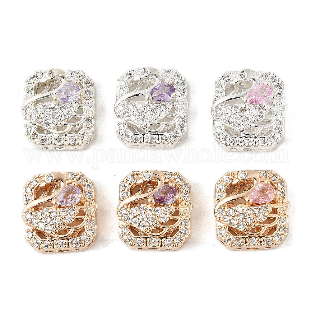 Латунные микро проложить кубического циркония бусы, лебедь, без свинца и без кадмия, долговечный