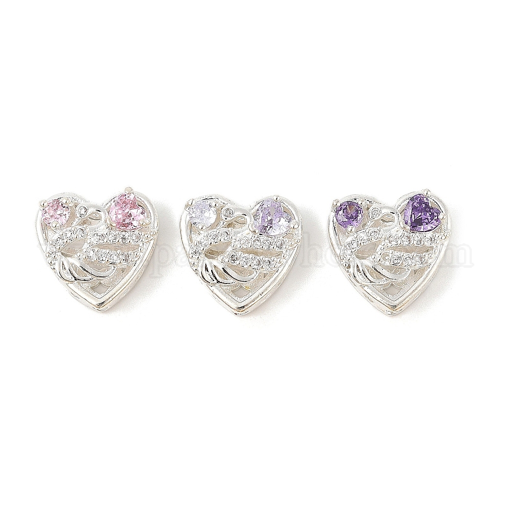 Латунные микро проложить кубического циркония бусы, сердце с лебедем, без свинца и без кадмия, долговечный