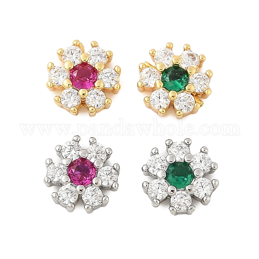 Латунные микро проложить кубического циркония бусы, без кадмия, без никеля и без свинца, цветок