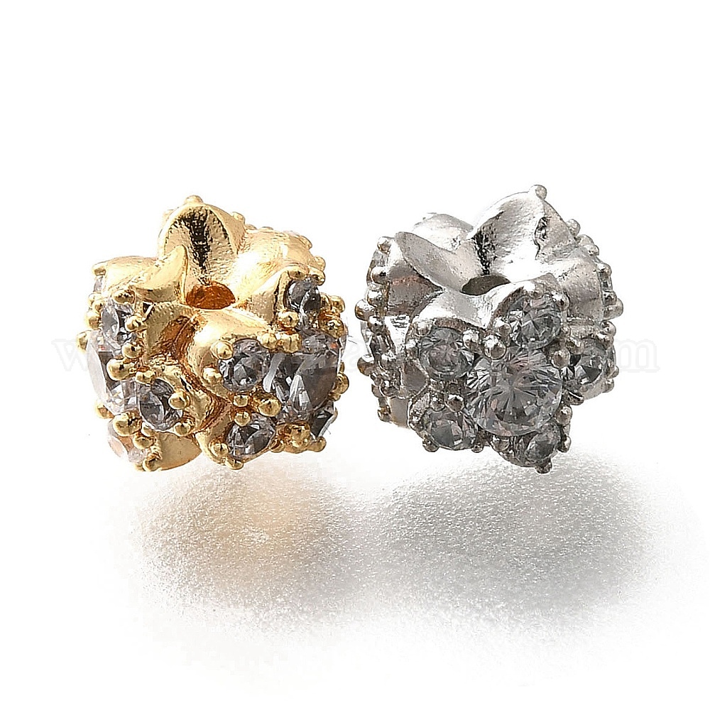 • Платинированный Латунные микро проложить кубического циркония бусы, без кадмия, без никеля и без свинца, цветок, Реальная платина, 7x6 мм, отверстие : 1 мм