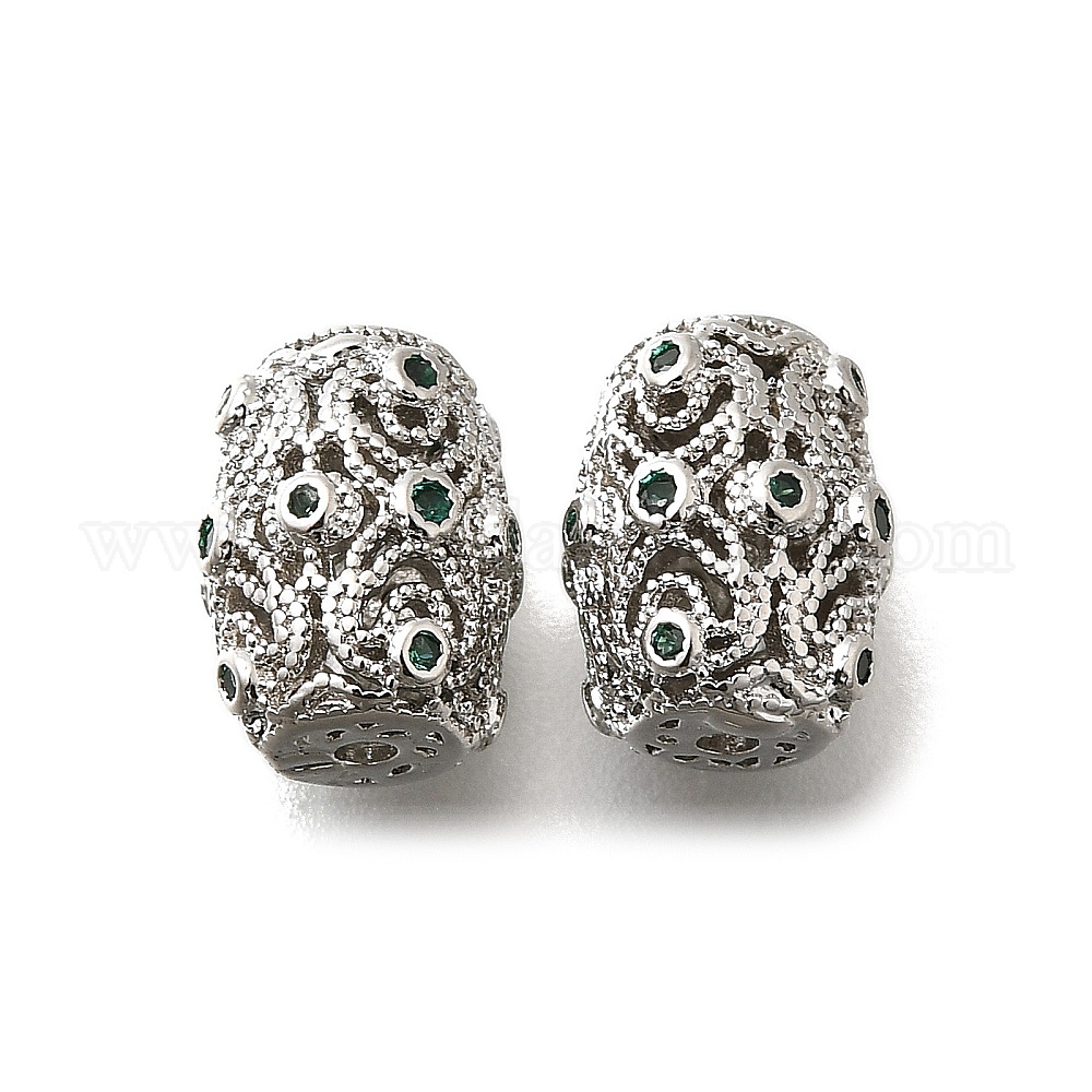 Бусины из латуни, микропаве, зеленые, фианиты, без кадмия, без никеля и без свинца, полого цилиндра