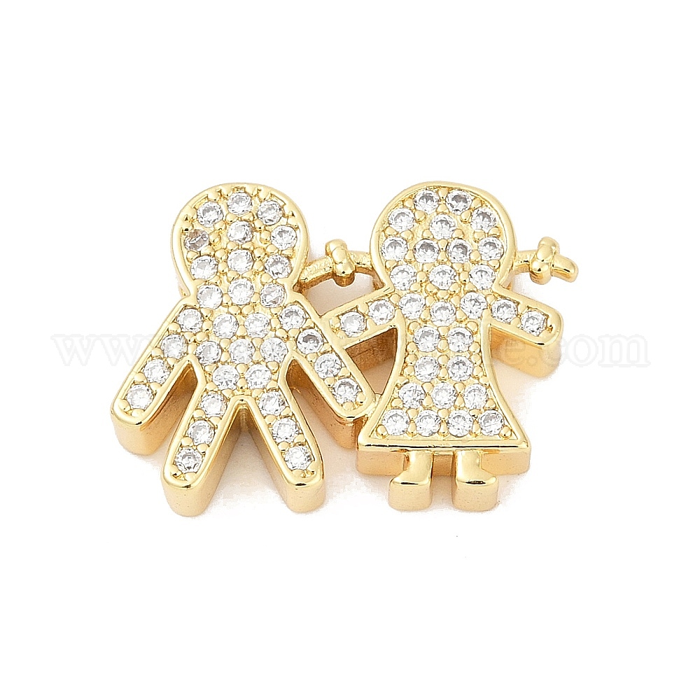 • Настоящее золото 18K Латунные микро проложить кубического циркония бусы, мальчик и девочка, без свинца и без кадмия, долговечный, реальный 18 k позолоченный, 18x25.5x5 мм, отверстие : 2.2 мм