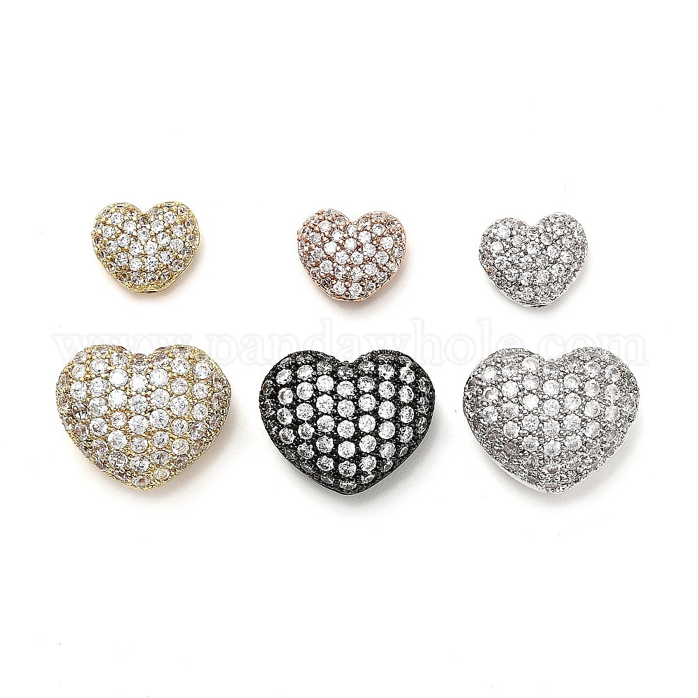 Латунные микро проложить кубического циркония бусы, сердце, стойки покрытие, долговечный, без свинца и без кадмия