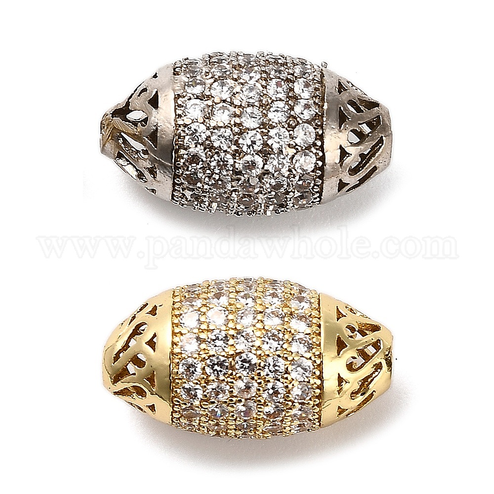 Латунные микро проложить кубического циркония бусы, овальные, стойки покрытие, долговечный, без свинца и без кадмия