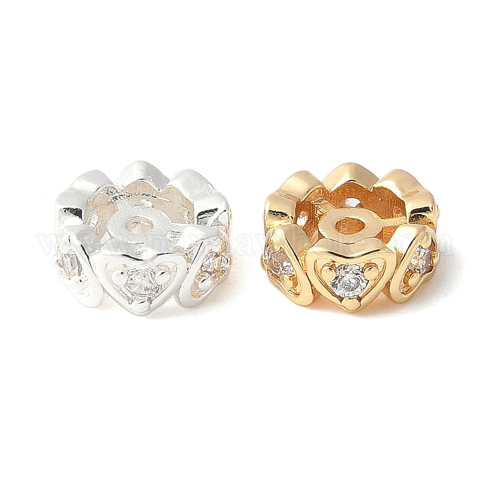 Латунные микро-паве прозрачные кубические циркониевые бусины, без кадмия, без никеля и без свинца, сердце