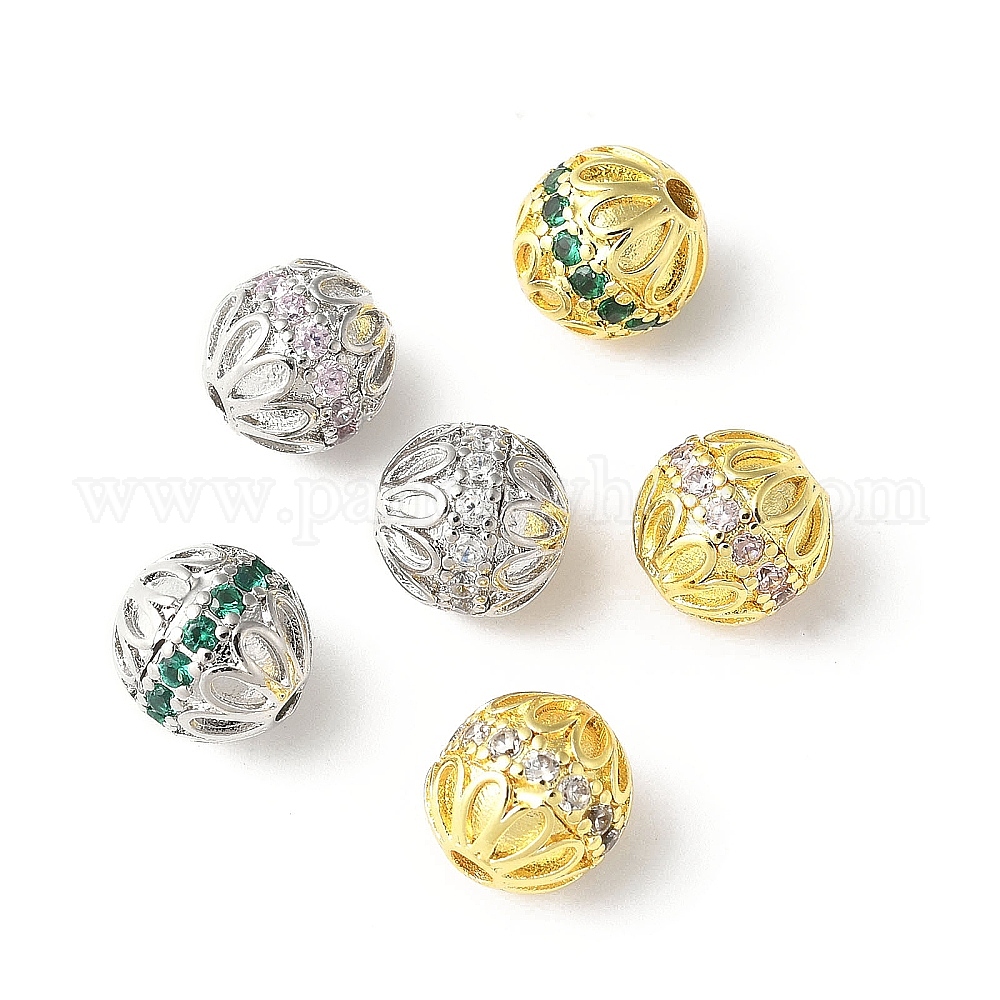 Латунные микро проложить кубического циркония бусы, круглые, стойки покрытие, прочное покрытие, без кадмия и без свинца
