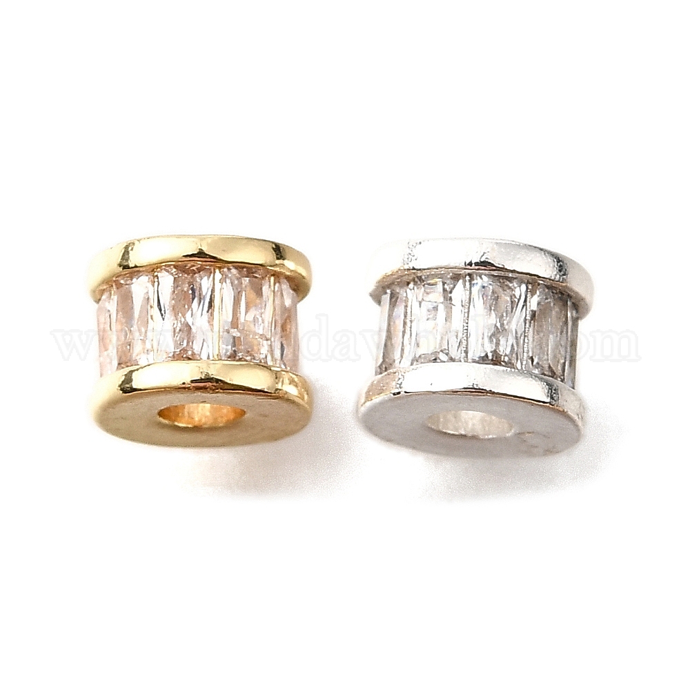 • Серебро Колонна латунные микро-паве кубические циркониевые разделительные бусины, стойки покрытие, долговечный, серебряные, 6x4.5 мм, отверстие : 2 мм
