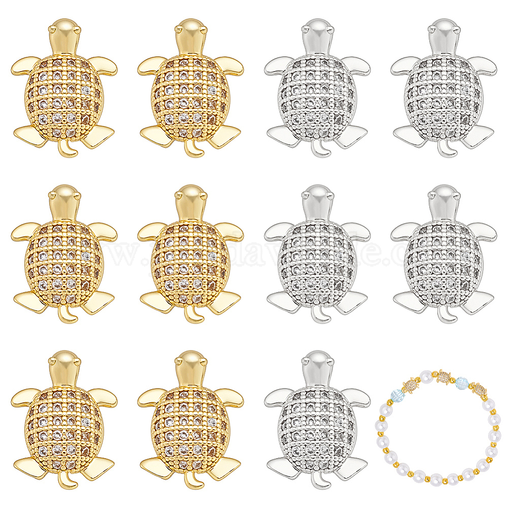 12 шт. 2 цвета стойка покрытие латунь микропаве прозрачные кубические циркониевые бусины, черепаха, долговечный, без кадмия и без свинца