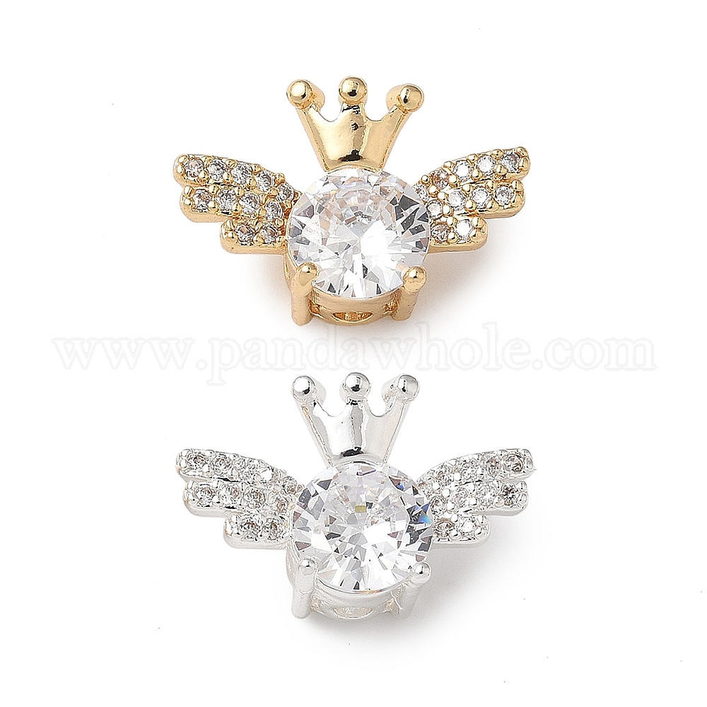 Латунные микропаве из прозрачного кубического циркония, без кадмия, без никеля и без свинца, ангел и корона