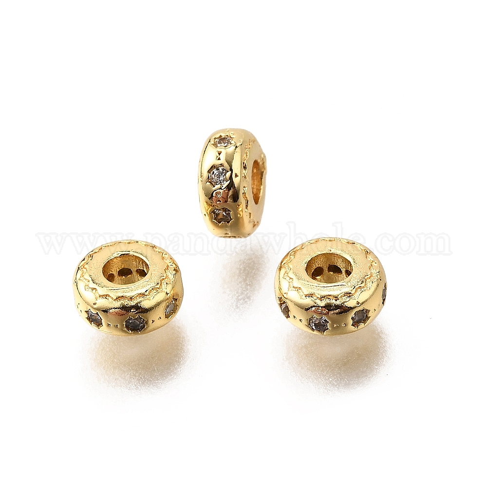 • Золотой Латунные микро проложить кубического циркония бусы, стойки покрытие, без кадмия и без свинца, долговечный, плоско-круглые, золотые, 6x3 мм, отверстие : 2.5 мм