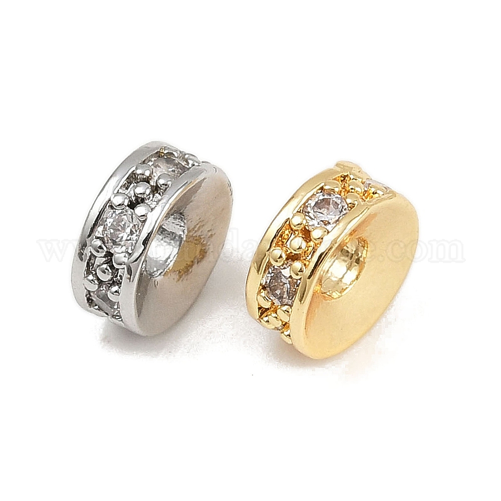 Латунные микро проложить кубического циркония бусы, плоско-круглые