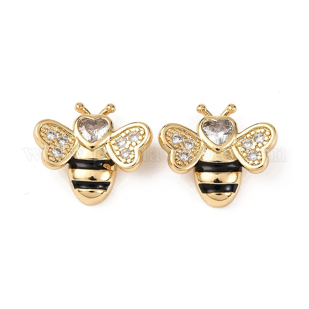 • Настоящее золото 18K Латунные микро проложить кубического циркония бусы, Пчелы, с эмалью, стойки покрытие, долговечный, без свинца и без кадмия, реальный 18 k позолоченный, 13x15x4 мм, отверстие : 1 мм