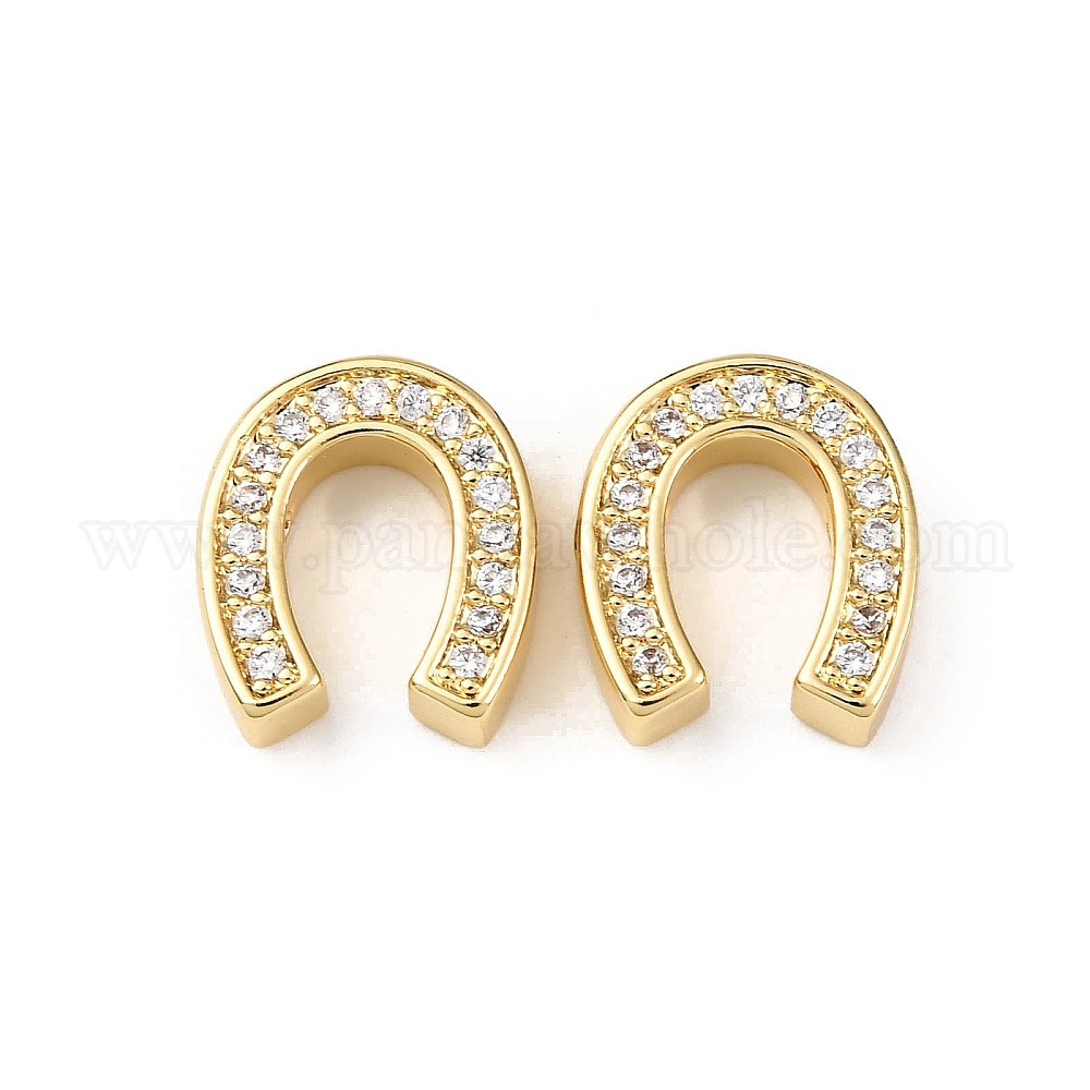 Латунные микро проложить кубического циркония бусы, Подковы, стойки покрытие, долговечный, без свинца и без кадмия