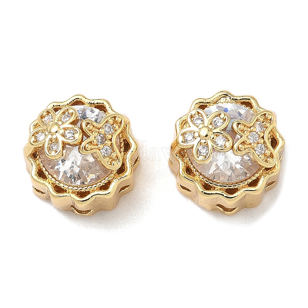 Латунные микропаве из прозрачного кубического циркония, плоские круглые с бабочкой