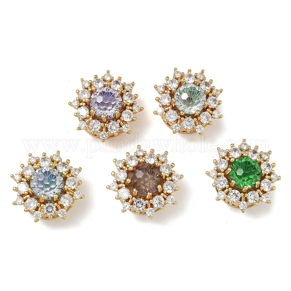 Латунные микро проложить кубического циркония бусы, плоско-круглые, реальный 18 k позолоченный