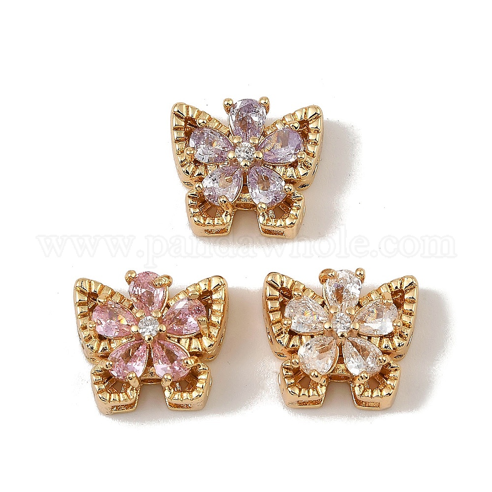 Латунные микро проложить кубического циркония бусы, бабочка, реальный 18 k позолоченный