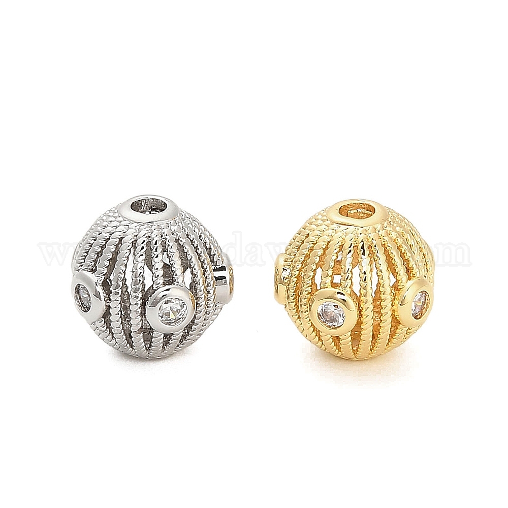 Латунные микро проложить кубического циркония бусы, полый, круглые