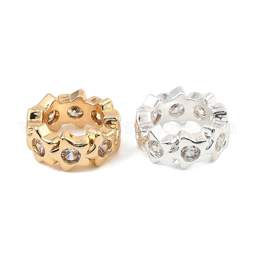 Латунные микро проложить кубического циркония бусы, плоские круглые со звездой, бусины с большим отверстием