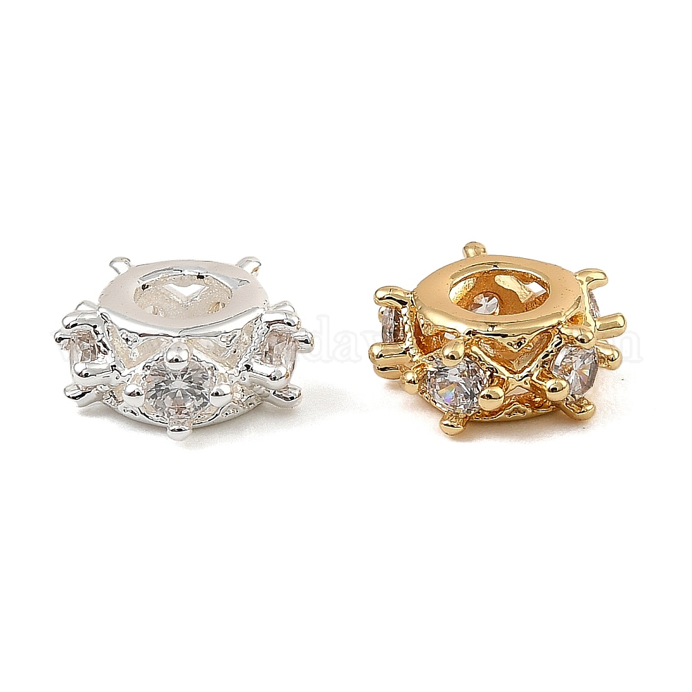 Латунные микро проложить кубического циркония бусы, плоско-круглые