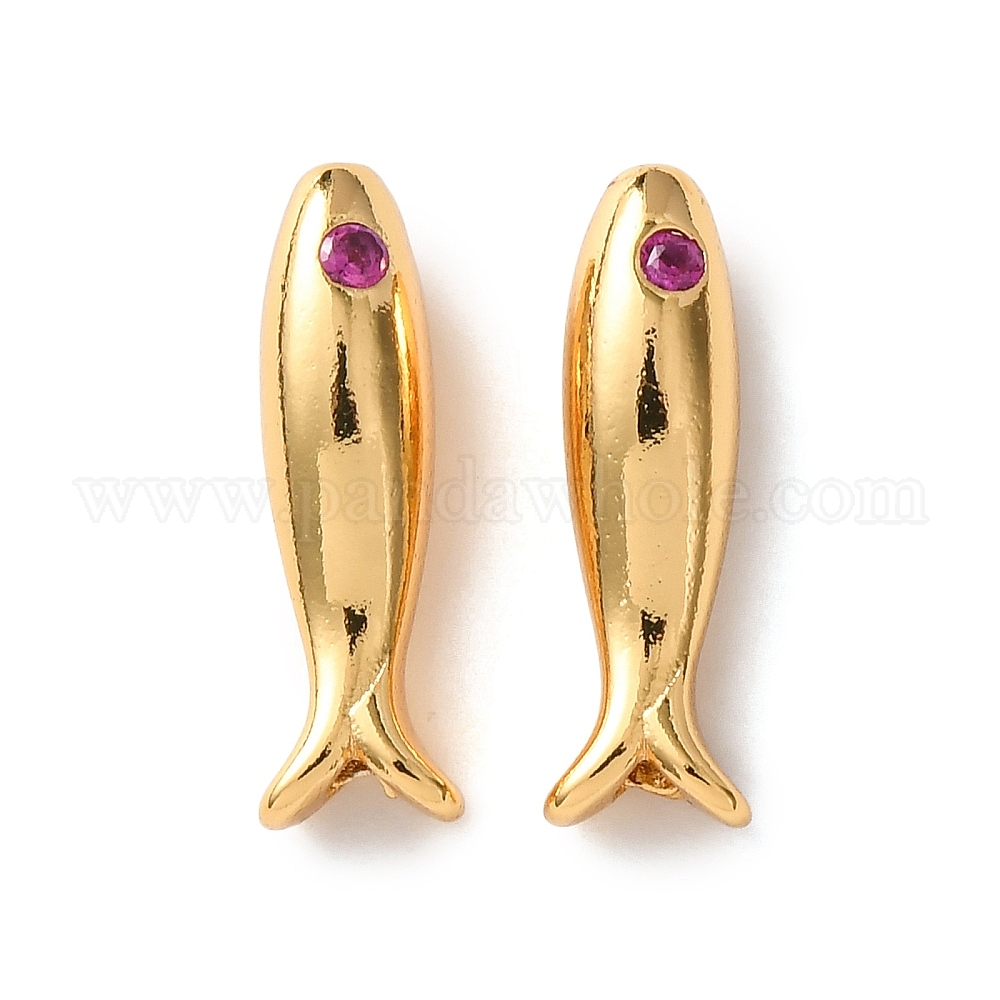 Латунные микро проложить кубического циркония бусы, рыба, стойки покрытие, долговечный, без кадмия и без свинца