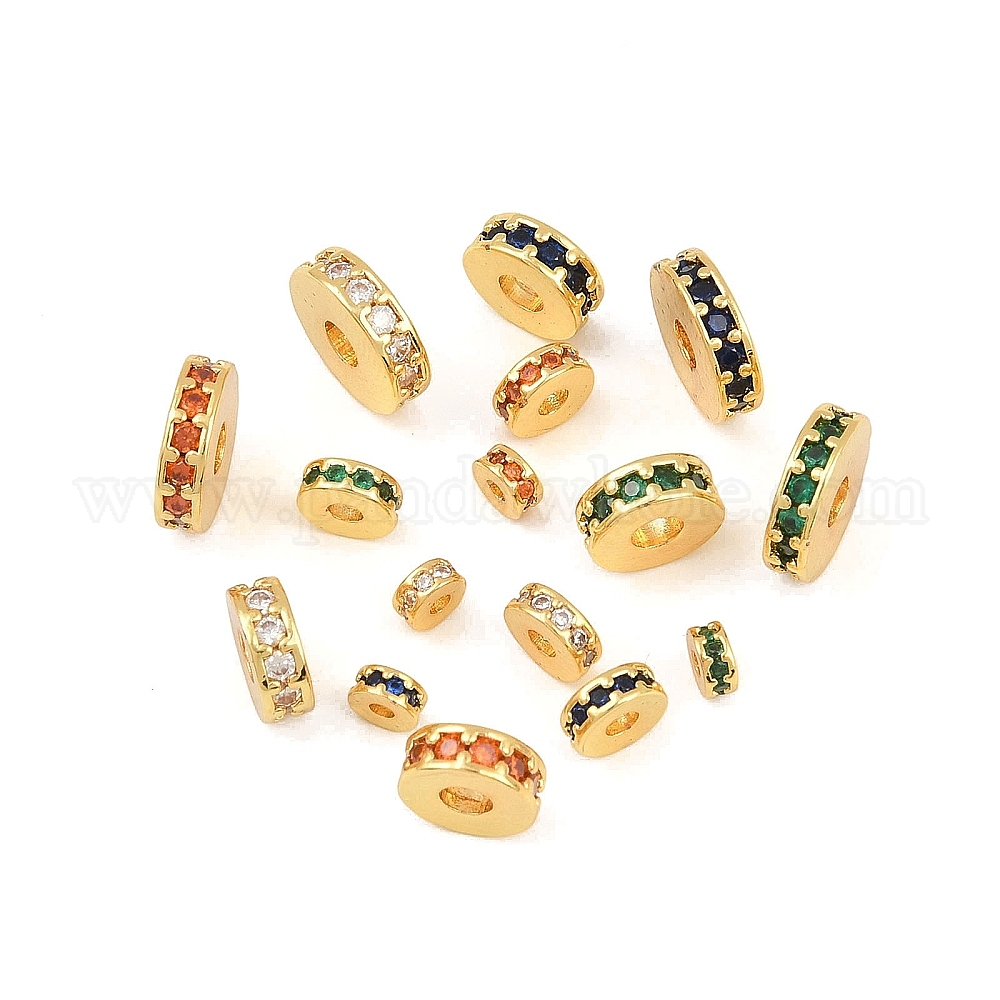 Латунные микро проложить кубического циркония бусы, плоско-круглые, долговечный, стойки покрытие