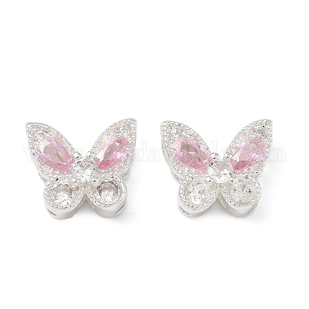 • Посеребрённый Латунные бусины в форме бабочки, инкрустированные кубическим цирконием., 925 серебро покрытием, 10.5x12.5x7 мм, отверстие : 1~1.8 мм