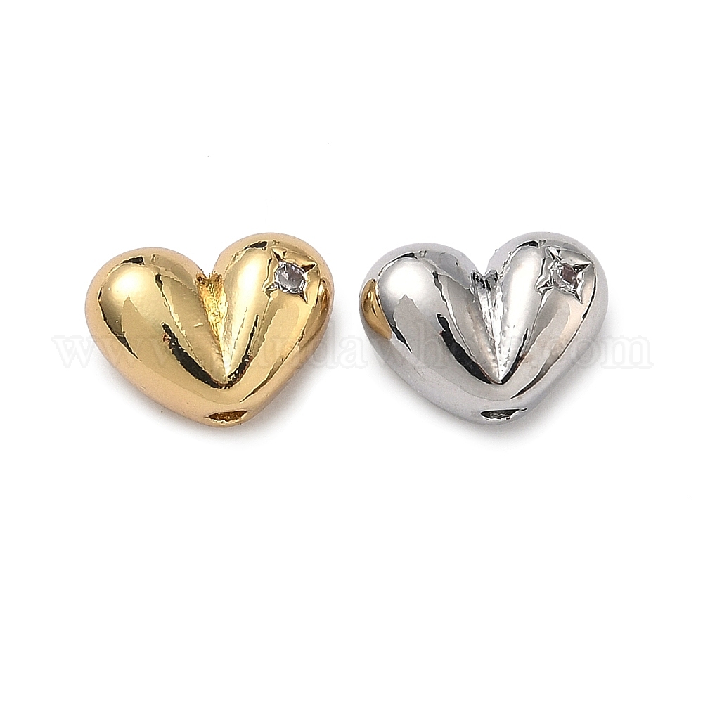 Бусины из прозрачного кубического циркония в форме сердца из латуни с микропаве, долговечный, стойки покрытие, без свинца и без кадмия
