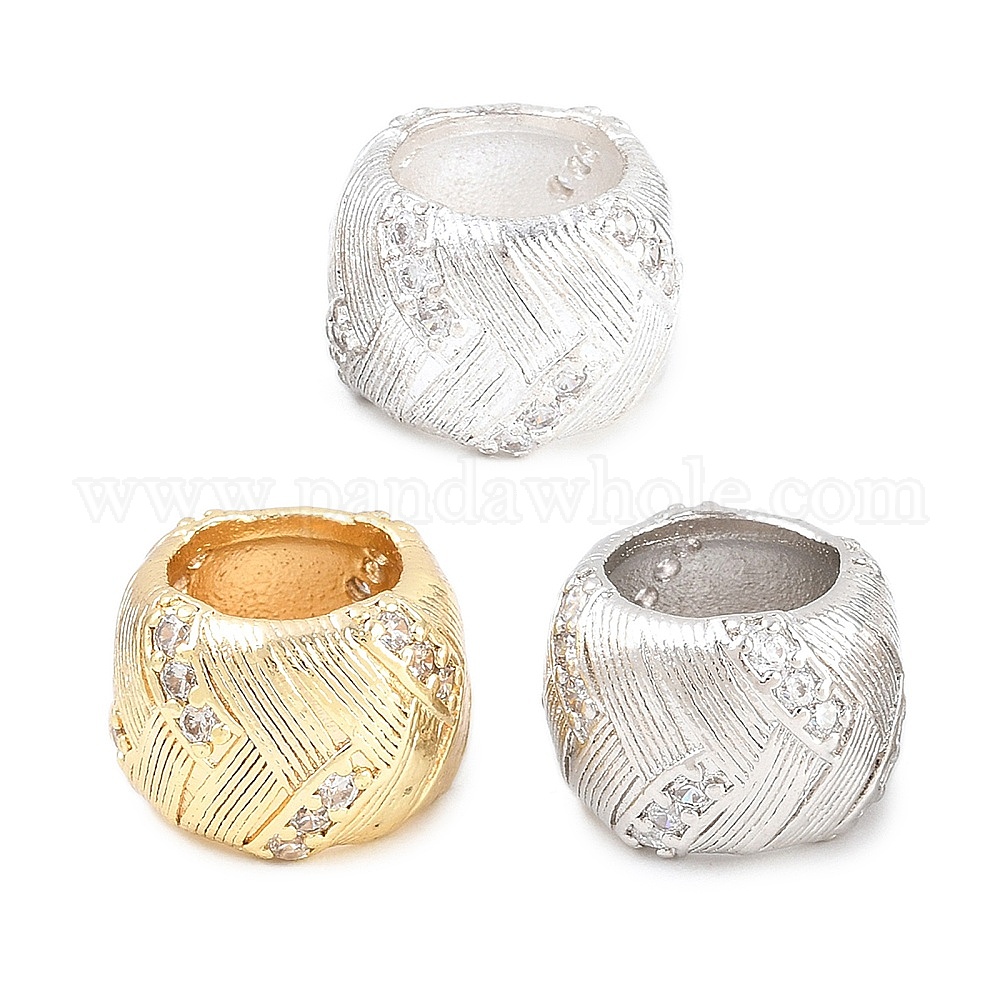 Латунь микропаве прозрачный кубический цирконий европейский бисер, долговечный, стойки покрытие, без свинца и без кадмия, круглые, большое отверстие шарик