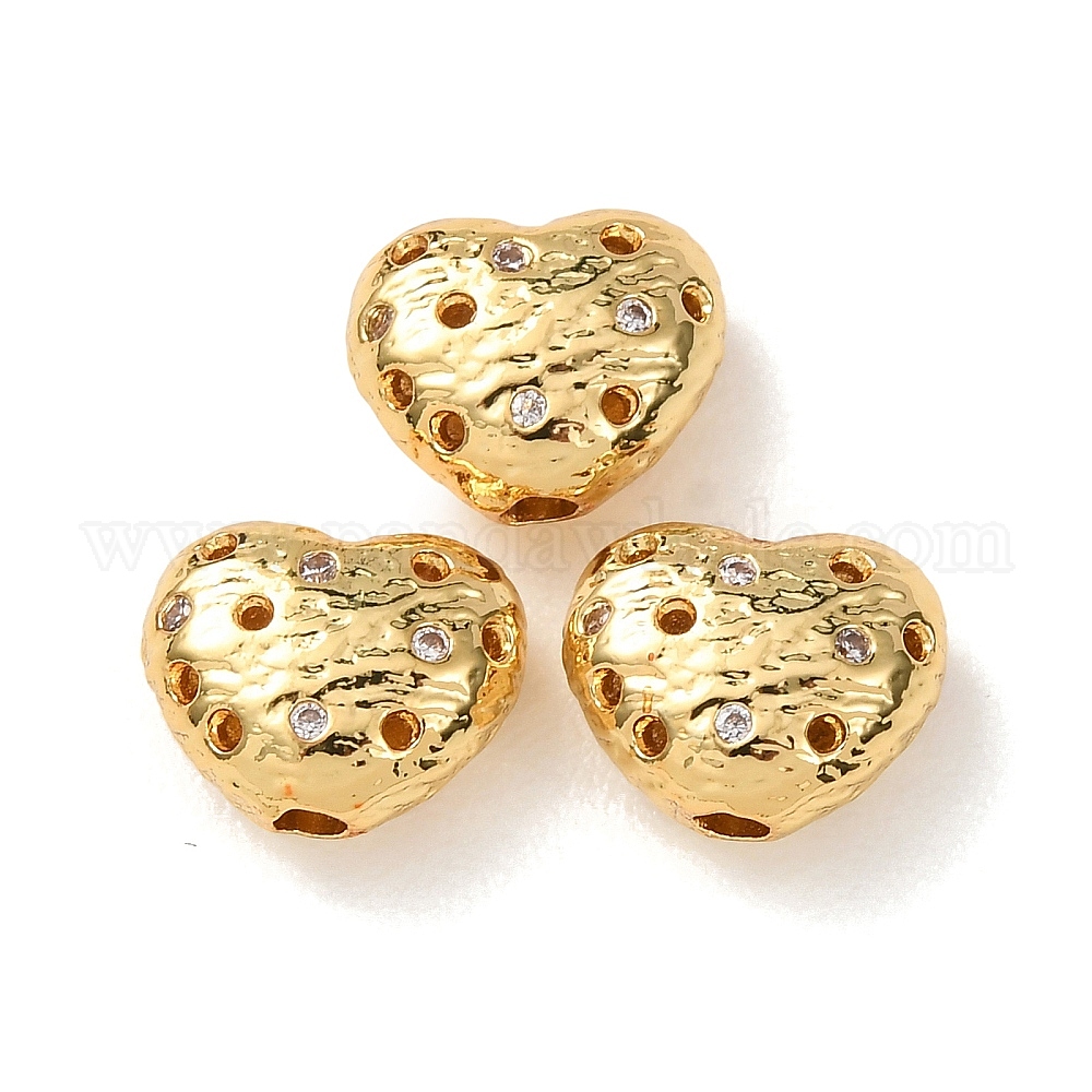 Латунные микро проложить кубического циркония бусы, сердце, без кадмия и без свинца, стойки покрытие, долговечный