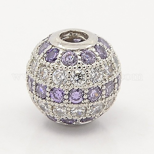 Сирень и четкие CZ ювелирных изделий из латуни микро проложить кубического циркония круглых бусин, класс AAA, без свинца, без кадмии и без никеля, 10 мм, отверстие : 2 мм