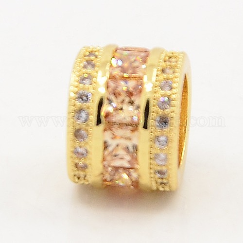 Peachpuff CZ ювелирных результаты латунные микро проложить кубического циркония бусы, крупные бусины столбцов дыра, класс AAA, без свинца, без кадмии и без никеля, 8x10x10 мм, отверстие : 6 мм