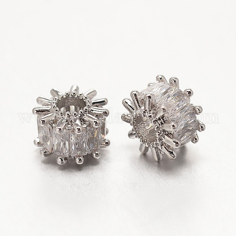 Латунные микро проложить класса AAA кубического циркония бусы, колонка, без кадмия, без никеля и без свинца, 9x7 мм, отверстие : 3 мм