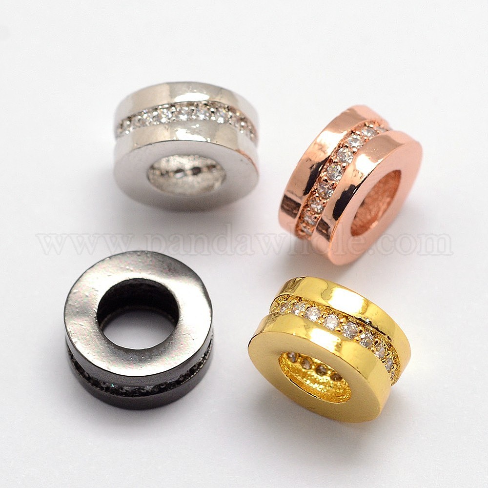 Латунные микро проложить кубического циркония бусы, колонка, бусины с большим отверстием, без свинца и без никеля