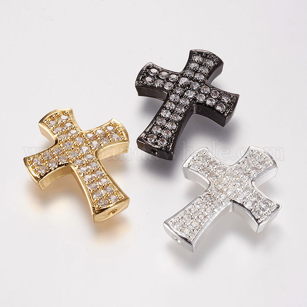 Латунные микро проложить кубического циркония бусы, крестик (00MPGJ)